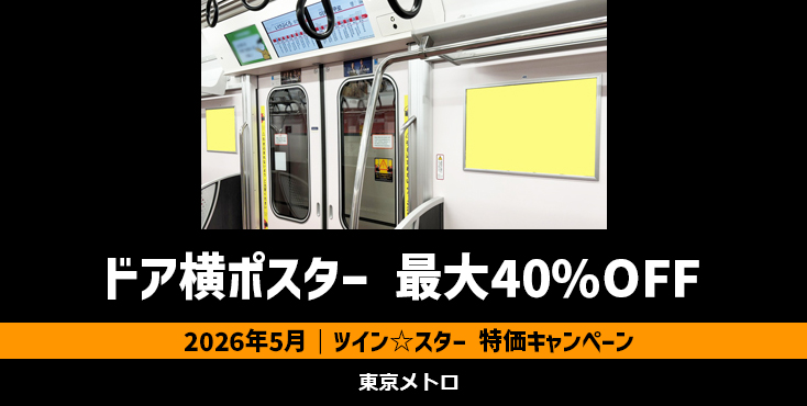 2026年5月掲載開始分に限り、ドア横ポスター「ツイン☆スター」を通常価格から20%~最大40%割引でご出稿頂けるチャンスです!