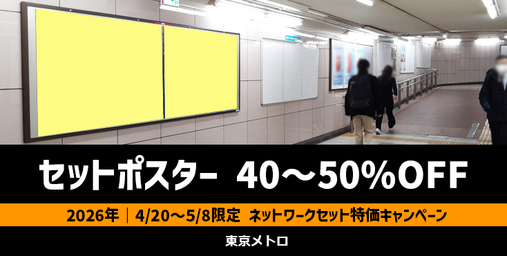 4/20(月)~5/8(金)開始分に限り、都内主要駅をカバーできるネットワークセットを通常価格から40%~最大50%オフでご出稿頂けるチャンスです!