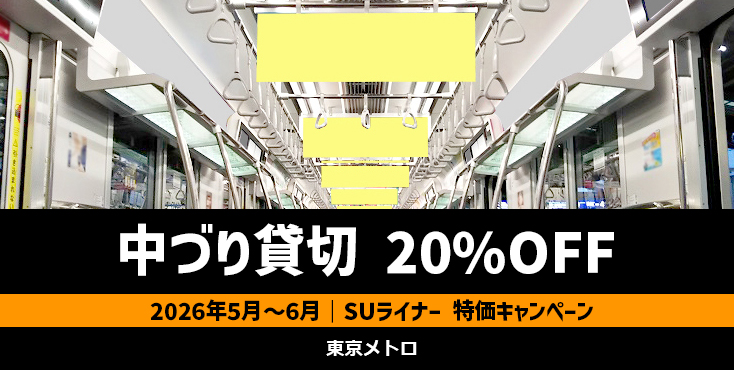 2026年5月~6月掲載開始分に限り、中づり貸切「SUライナー」を通常価格から20%オフでご出稿頂けるチャンスです!