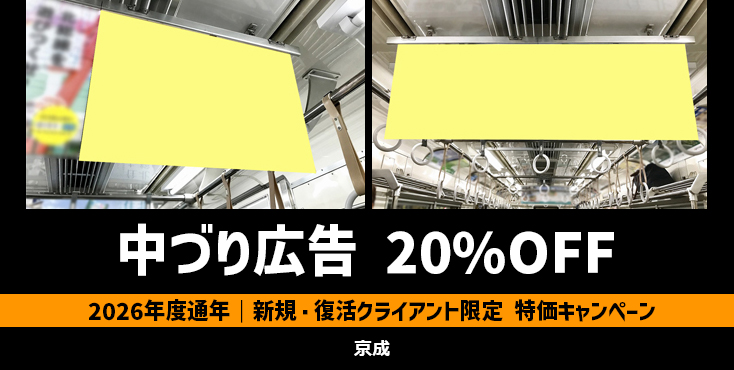 【2026年度通年】京成電鉄 新規・復活クライアント限定 中づり20%オフキャンペーン