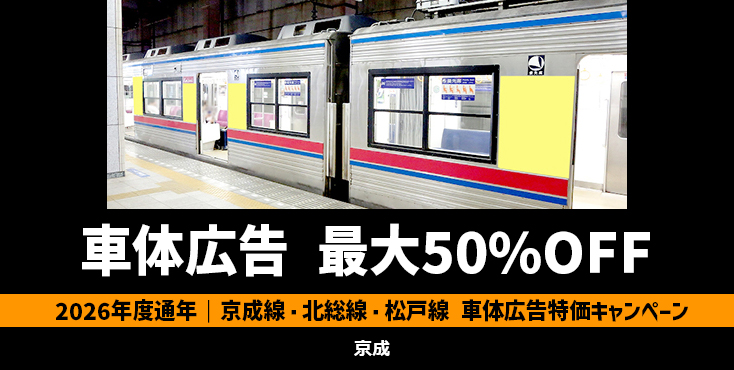 2026年4月~2027年3月掲載開始分に限り、京成電鉄の車体広告を特別価格でご出稿頂けるチャンスです!