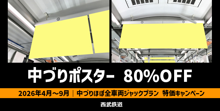 2026年4月~9月掲載開始分に限り、西武鉄道の中づりポスターを通常価格から80%オフでご出稿頂けるチャンスです!