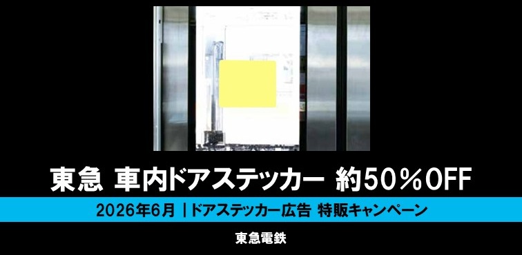 過去に東急電鉄で掲載実績のない新規クライアントに限り、2026年6月掲載開始分の車内ドアステッカーを約50%オフでご出稿頂けるチャンスです!