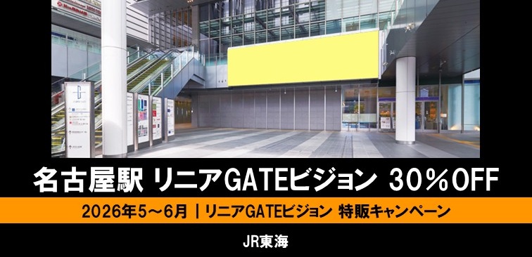 2026年5月4日~2026年6月30日掲載終了分に限り、名古屋駅のリニアGATEビジョンを通常価格から30%オフでご出稿頂けるチャンスです!