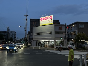 本媒体は視界の開けた交差点の上部に位置するうえ、高さ3m×幅5m720cmの大型サイズであるため目立ちやすく、遠くからでもしっかりと視認できるのが特徴です。