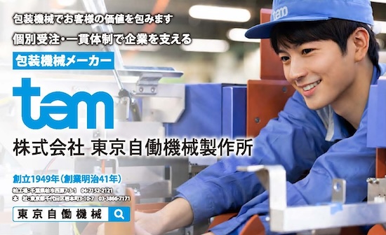 株式会社 東京自働機械製作所様は「つめる安心、つつむ信頼、くりかえす挑戦」をキャッチコピーに、食品の包装機械や工場で使われる自動化ラインシステムなどを提供する企業です。