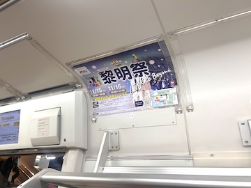 電車内まど上ポスターを活用した大学祭告知事例|JR 埼京線・りんかい線